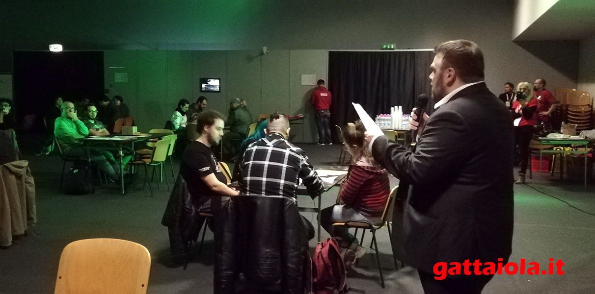 Per tutti e tre i giorni al padiglioe A, stand A12 La prima fiamma, Laboratorio Gdr: Come TI comporteresti se ti trovassi all’interno di una situazione diversa dalla quotidianità? In una zona di guerra, in un film horror inseguito da una creatura malefica, cosa faresti TU? Interpreta te stesso il più coerentemente possibile e mettiti alla prova! Gettati in svariate ambientazioni e scopri che tipo di personaggio saresti! Il Laboratorio GDR si propone di permettere ai giocatori scoprirsi e analizzarsi tramite quel potentissimo mezzo che è l’interpretazione e l’immedesimazione che solo il gioco di ruolo può dare.